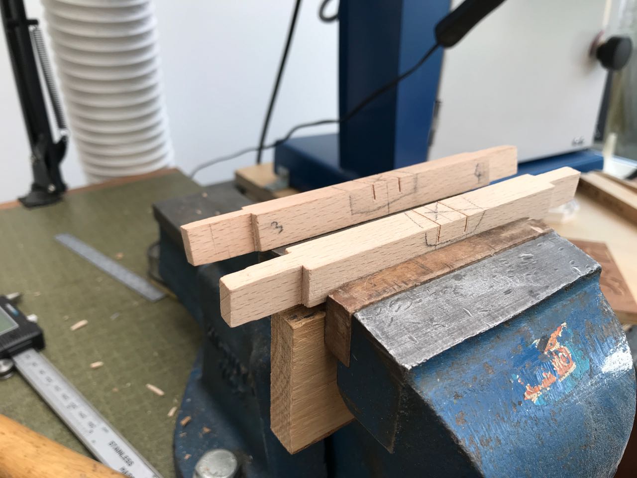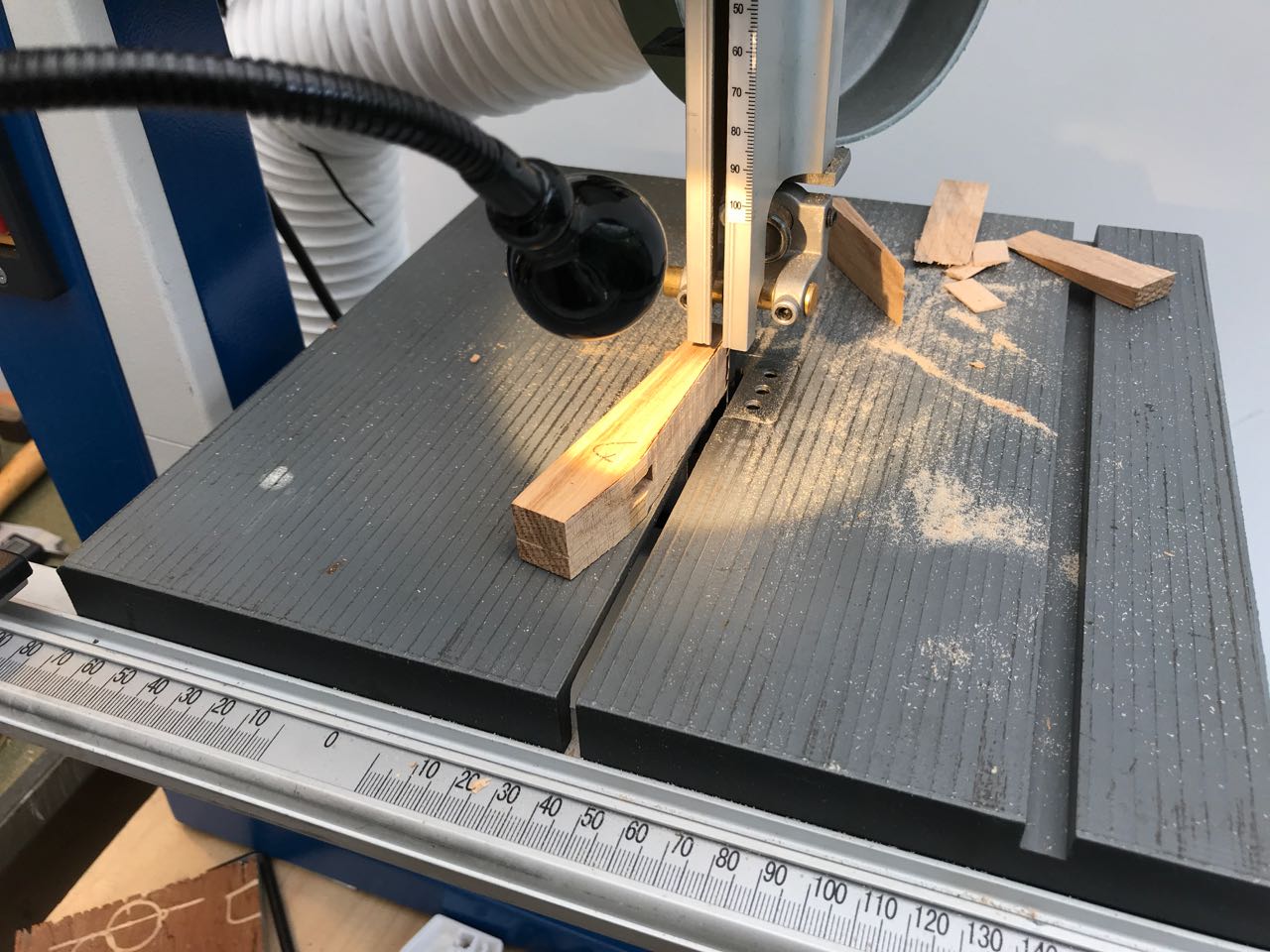 I removed the majority of the material from the tennons in the bandsaw ready to be finished to size by hand.